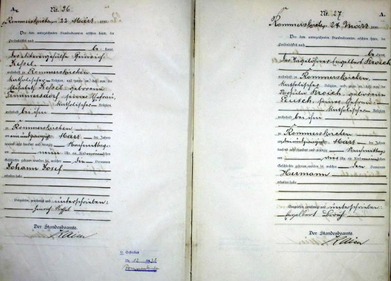 Bürgermeisterei Rommerskirchen, Register der Geburts-Urkunden für das Jahr 1890
