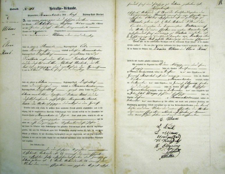 - Standesamt Rommerskirchen, Register der Heirats-Urkunden für das Jahr 1862