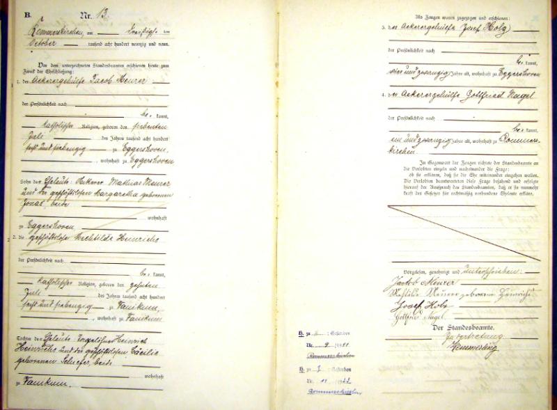 | aktuell | 22:40, 8. Dez. 2011 | 1.261 × 1.939, 19 Seiten (5,51 MB) | KlausErdmann (Diskussion • Beiträge) | {{Information |Beschreibung = ;Standesamtsbezirk Rommerskirchen, Register der Heirats-Urkunden pro 1899 |Quelle = Gemeindearchiv Rommerskirchen |Urheber = |Datum = 1899 |Scans = Klaus Erdmann ' |