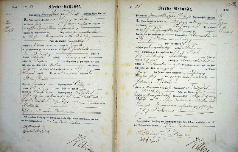 Standesamt Rommerskirchen, Register der Sterbe-Urkunden für das Jahr 1874