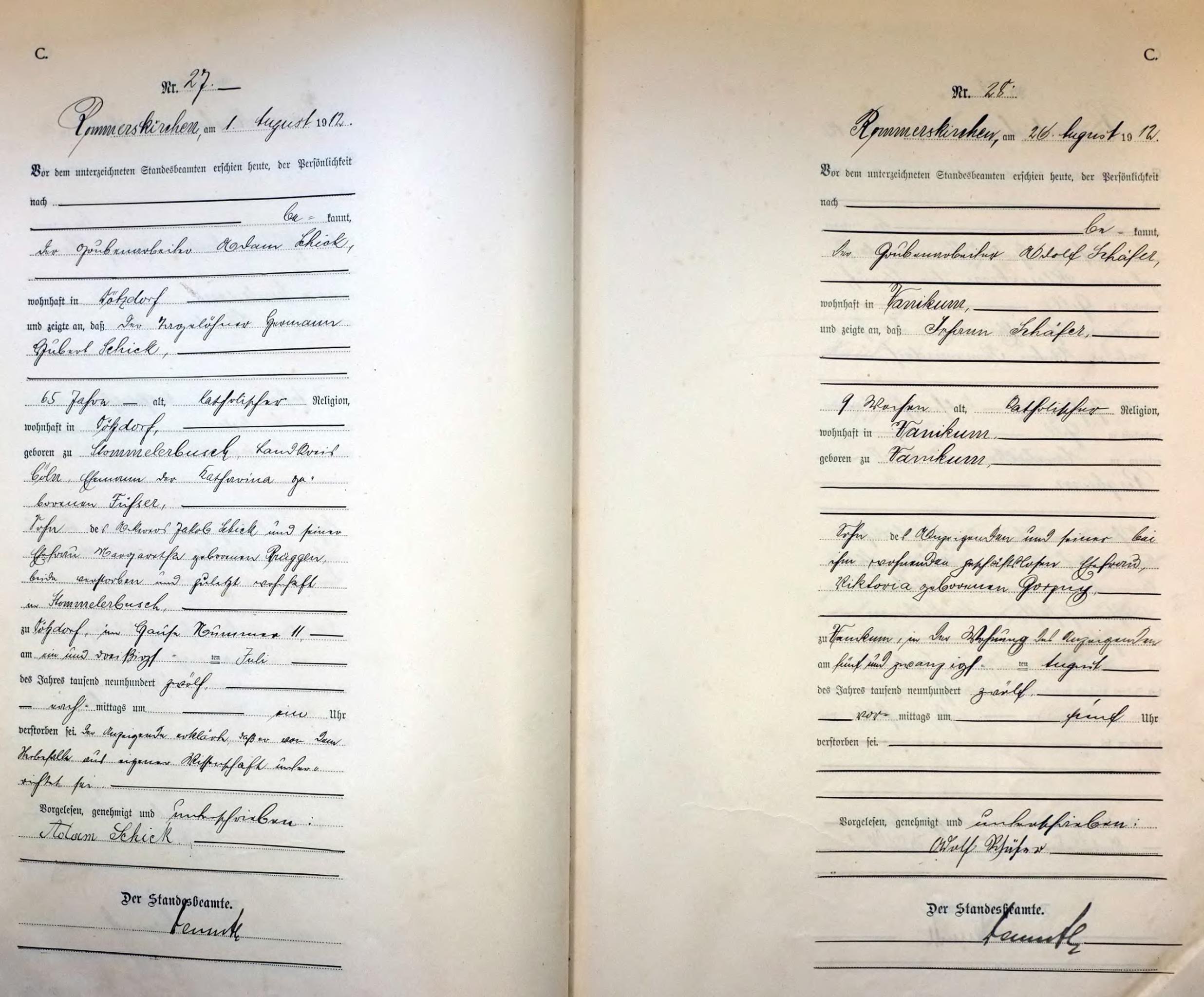 "Standesamtregister aus dem Gemeindearchiv Rommerskirchen"