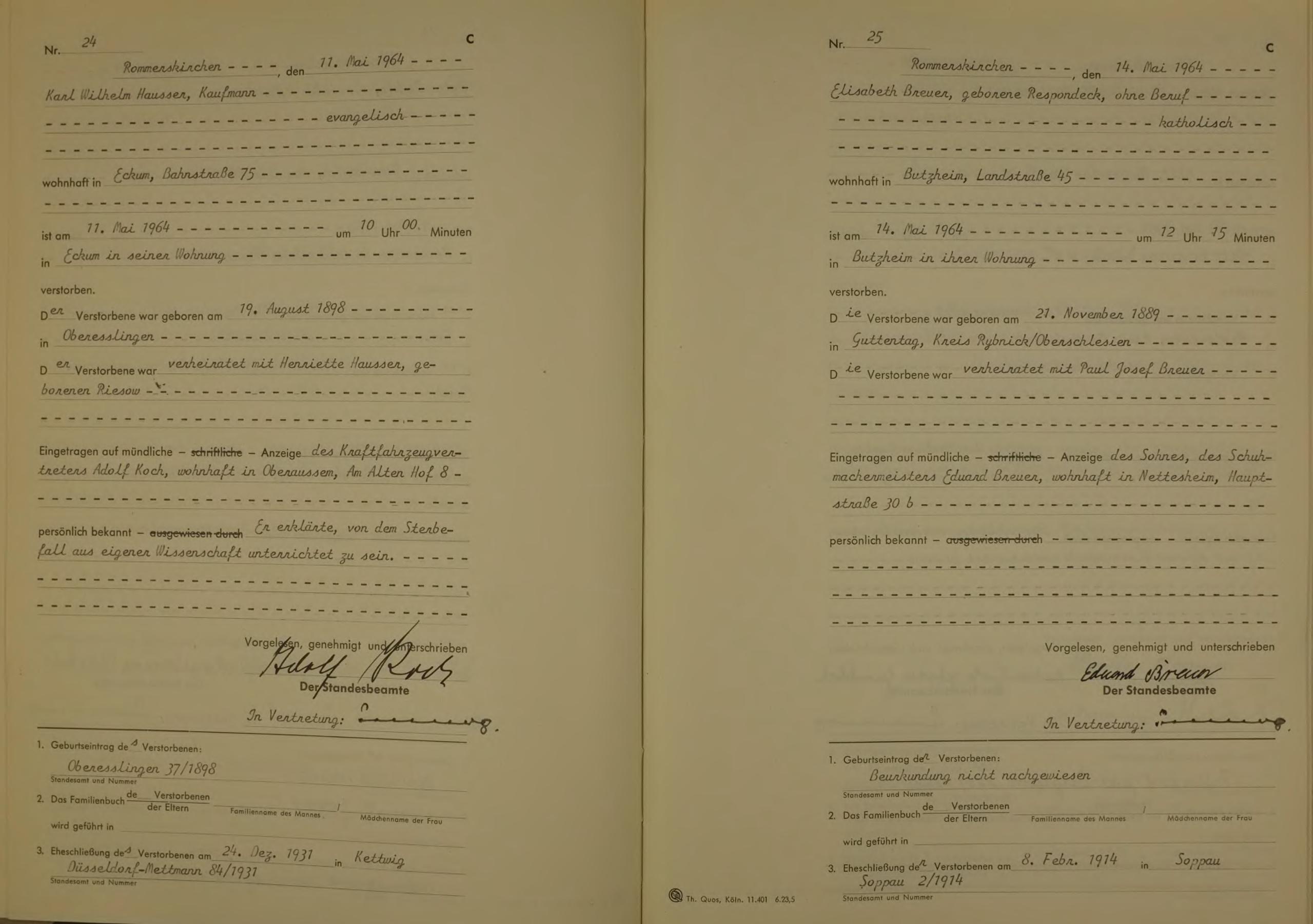 "Standesamtregister aus dem Gemeindearchiv Rommerskirchen"