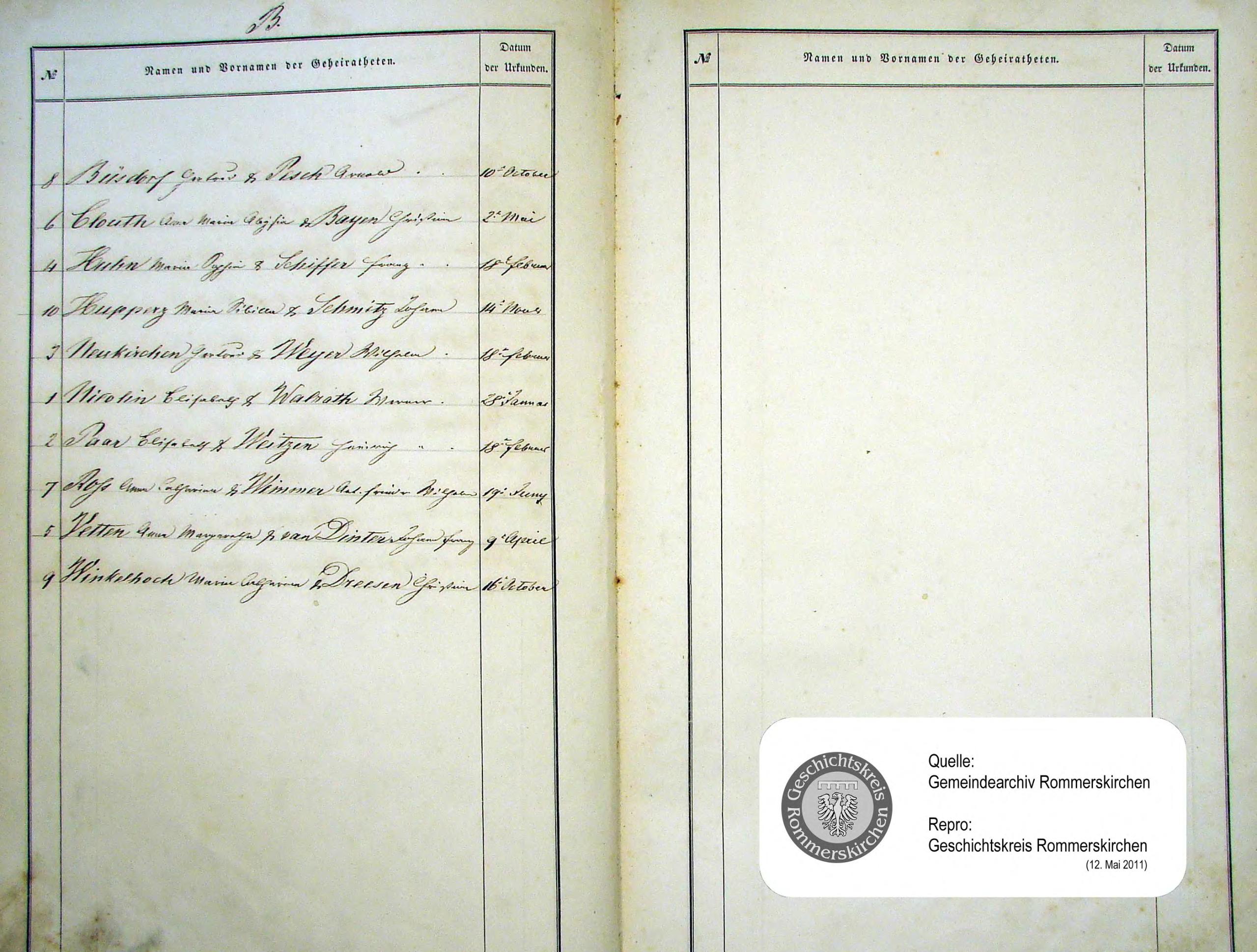 "Standesamtregister aus dem Gemeindearchiv Rommerskirchen"