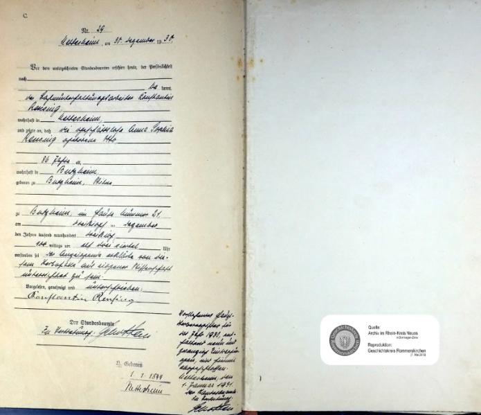 "Standesamtregister aus dem Gemeindearchiv Rommerskirchen"