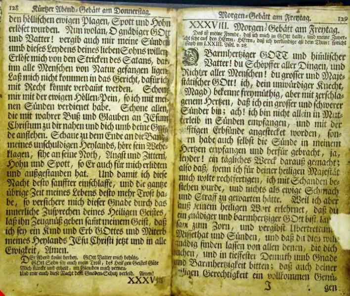 Neu eröffneter himmlischer Weyhrauch-Schatz oder vollständiges Gebätt-Buch. Auf allerhand Zeiten, Anliegen und Personen gerichtet; dabey ein genugsamer Unterricht vom Gebrauch des Heil. Abendmahls, Besuchungen der Krancken, und Zubereitung der zum Tode verurtheilten Personen, etc. samt behörigen Gebätten: Auß den aller-berühmtesten Englisch- und Französischen Theologis übersetzt und zusammen gezogen durch Johannem Zollikoffern, weiland Cammerern und Pfarrern der Christlichen Gemeinde zu Herisau. | |||