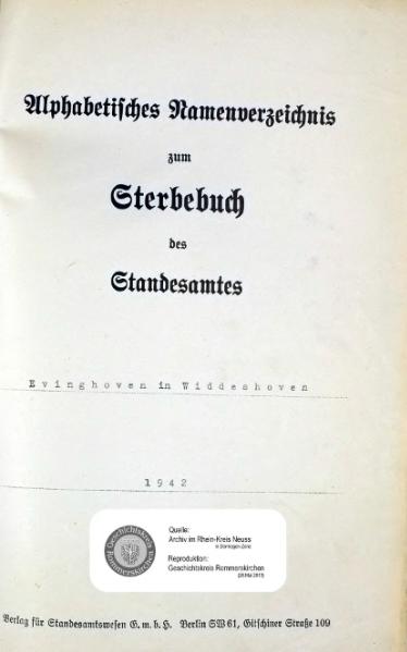 "Standesamtregister aus dem Gemeindearchiv Rommerskirchen"