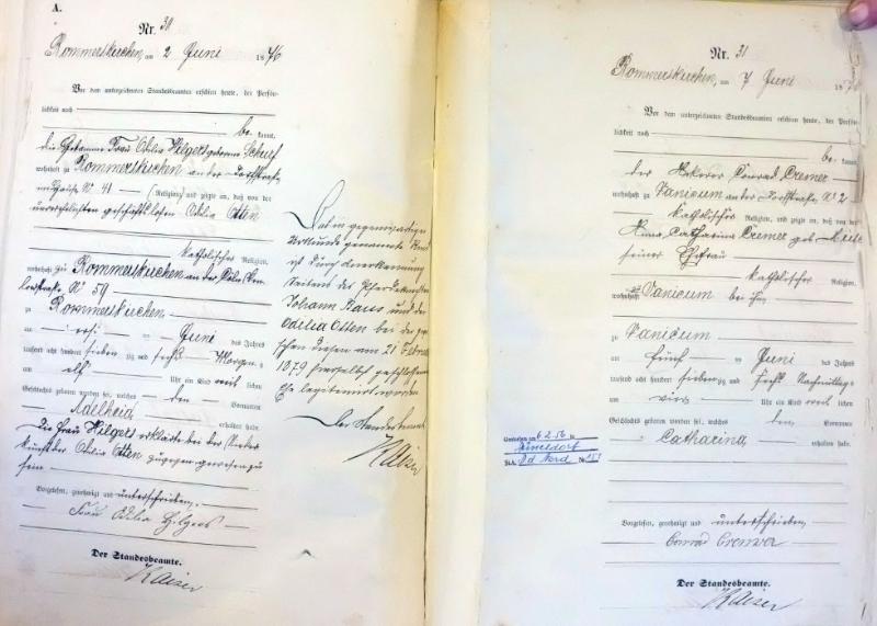 "Standesamtregister aus dem Gemeindearchiv Rommerskirchen"