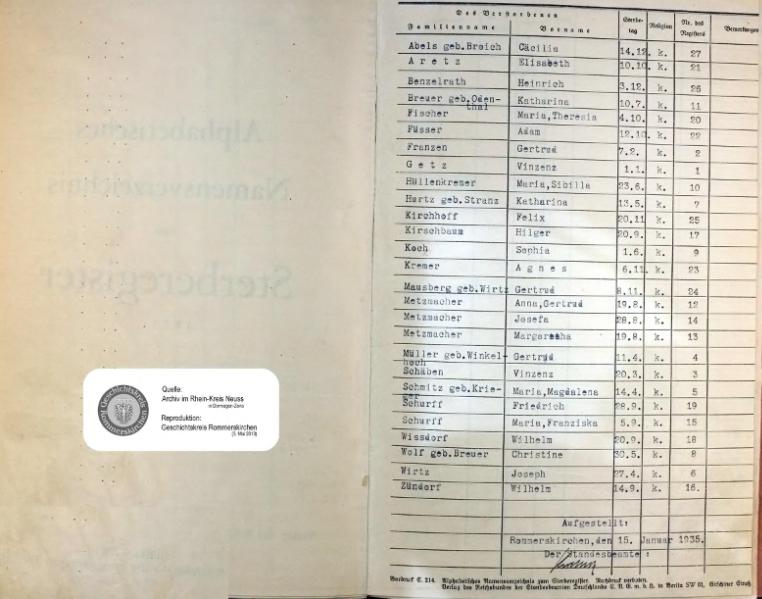 "Standesamtregister aus dem Gemeindearchiv Rommerskirchen"
