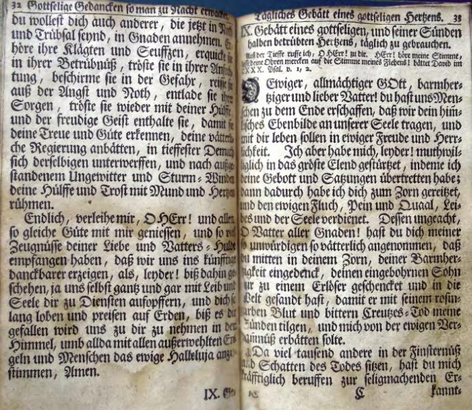 Neu eröffneter himmlischer Weyhrauch-Schatz oder vollständiges Gebätt-Buch. Auf allerhand Zeiten, Anliegen und Personen gerichtet; dabey ein genugsamer Unterricht vom Gebrauch des Heil. Abendmahls, Besuchungen der Krancken, und Zubereitung der zum Tode verurtheilten Personen, etc. samt behörigen Gebätten: Auß den aller-berühmtesten Englisch- und Französischen Theologis übersetzt und zusammen gezogen durch Johannem Zollikoffern, weiland Cammerern und Pfarrern der Christlichen Gemeinde zu Herisau. | |||