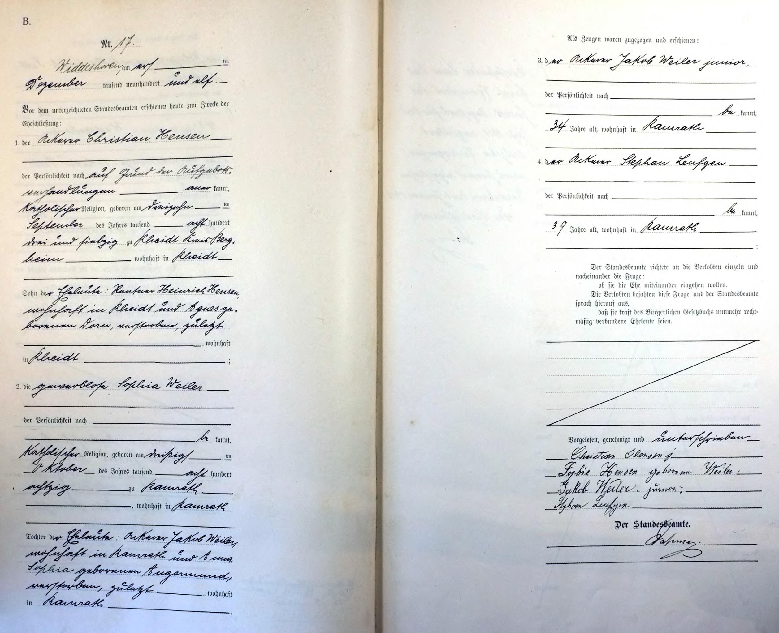 "Standesamtregister aus dem Gemeindearchiv Rommerskirchen"