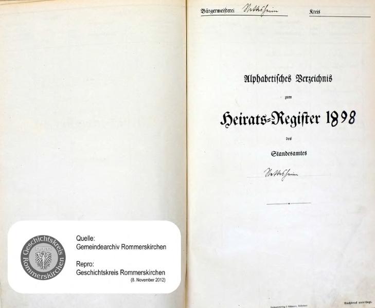 "Standesamtregister aus dem Gemeindearchiv Rommerskirchen"