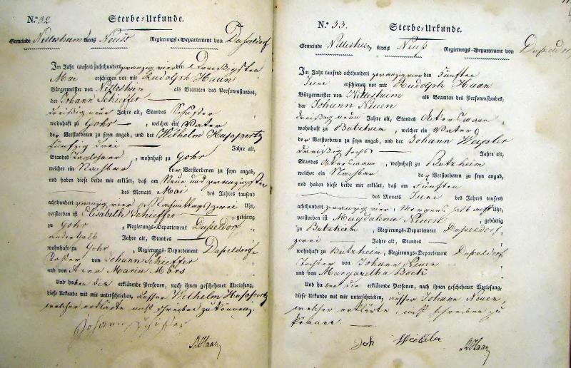 | aktuell | 07:51, 15. Okt. 2011 | 1.021 × 1.417, 41 Seiten (7,48 MB) | KlausErdmann (Diskussion • Beiträge) | {{Information |Beschreibung = ;Standesamt Nettesheim, Sterbeurkunden von 1824 |Quelle = Gemeindearchiv Rommerskirchen |Urheber = |Datum = 1824 |Scans = Klaus Erdmann ''(Repro: 13. Oktober 2011) |