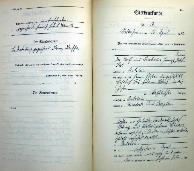 Standesamt Nettesheim, Sterbe-Register von 1892