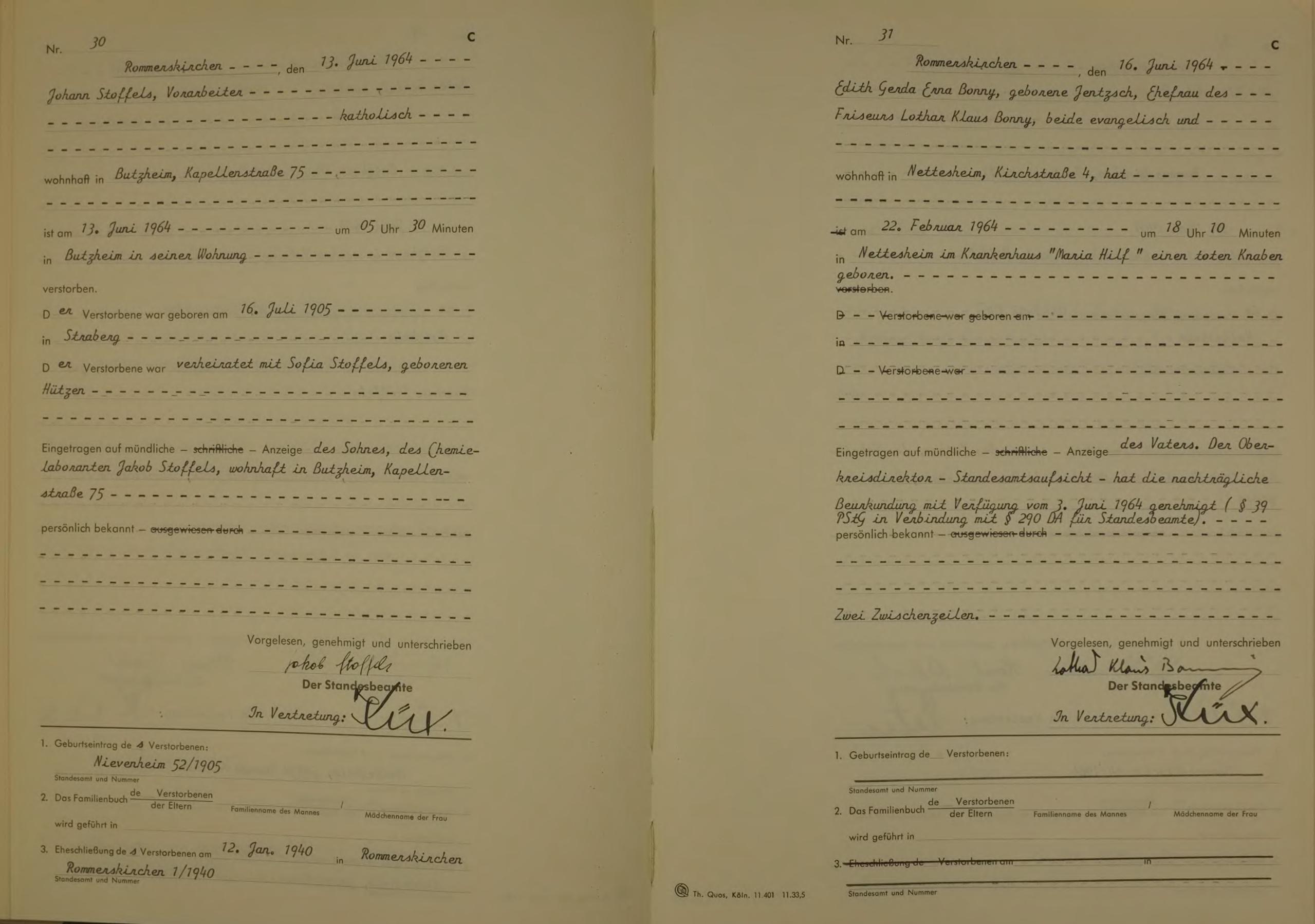 | aktuell | 08:25, 21. Jun. 2013 | 1.784 × 2.277, 36 Seiten (5,85 MB) | KlausErdmann (Diskussion • Beiträge) | {{Information |Beschreibung = ;Standesamt Rommerskirchen, Sterberegister von 1964 |Quelle = Archiv im Rhein-Kreis Neuss |Urheber = |Datum = 1964 |Scans = Klaus Erdmann ''(Repro: 20. Juni 2013)'' |Genehmig |