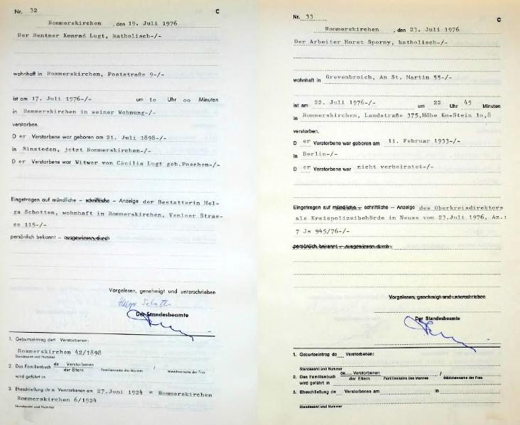 "Standesamtregister aus dem Gemeindearchiv Rommerskirchen"