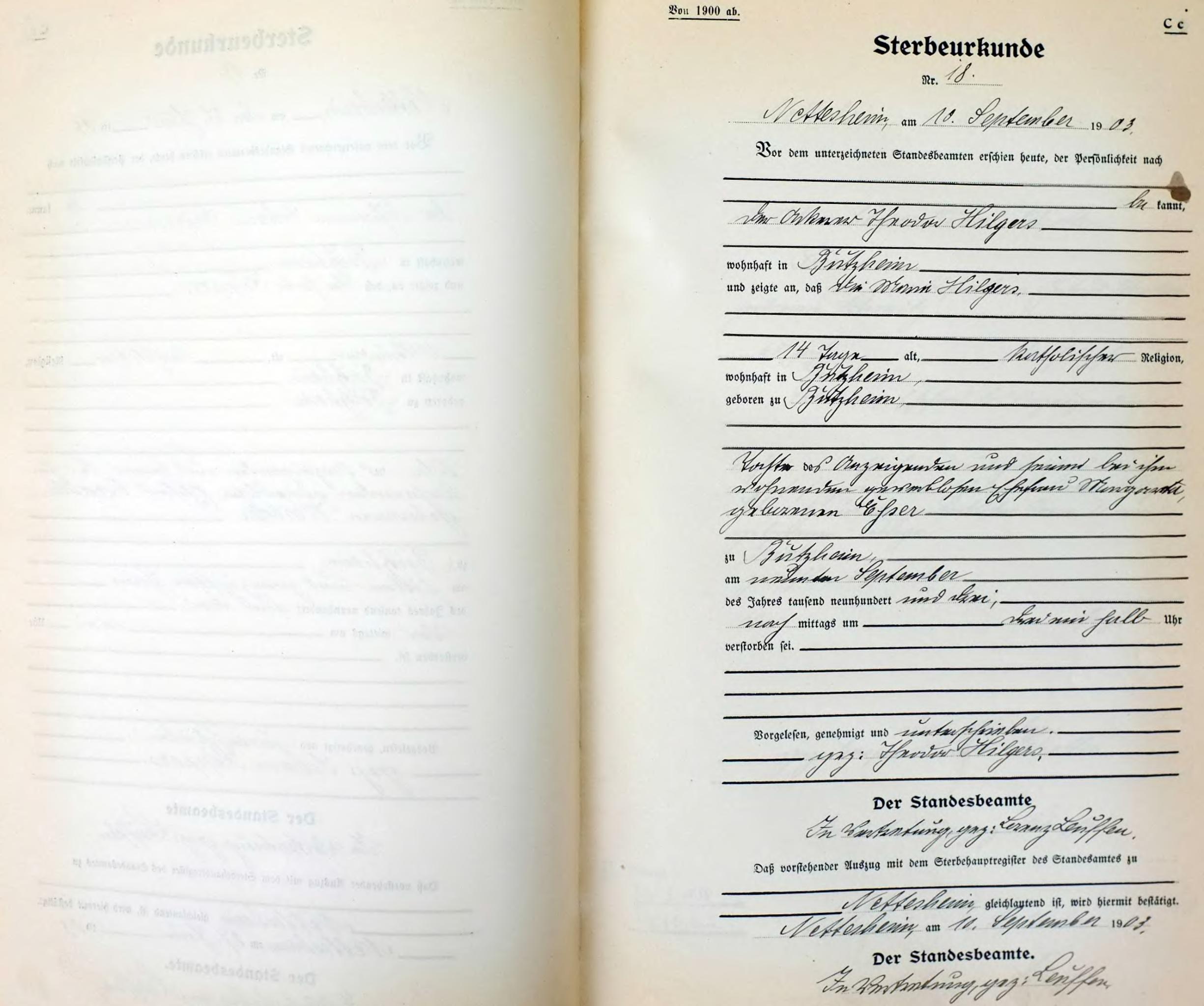 | aktuell | 08:55, 19. Mär. 2012 | 1.786 × 2.310, 33 Seiten (7,49 MB) | KlausErdmann (Diskussion • Beiträge) | {{Information |Beschreibung = ;Standesamt Nettesheim, Sterbe-Register von 1903 |Quelle = Gemeindearchiv Rommerskirchen |Urheber = |Datum = 1903 |Scans = Klaus Erdmann ''(Repro: 16.März 2012)'' |