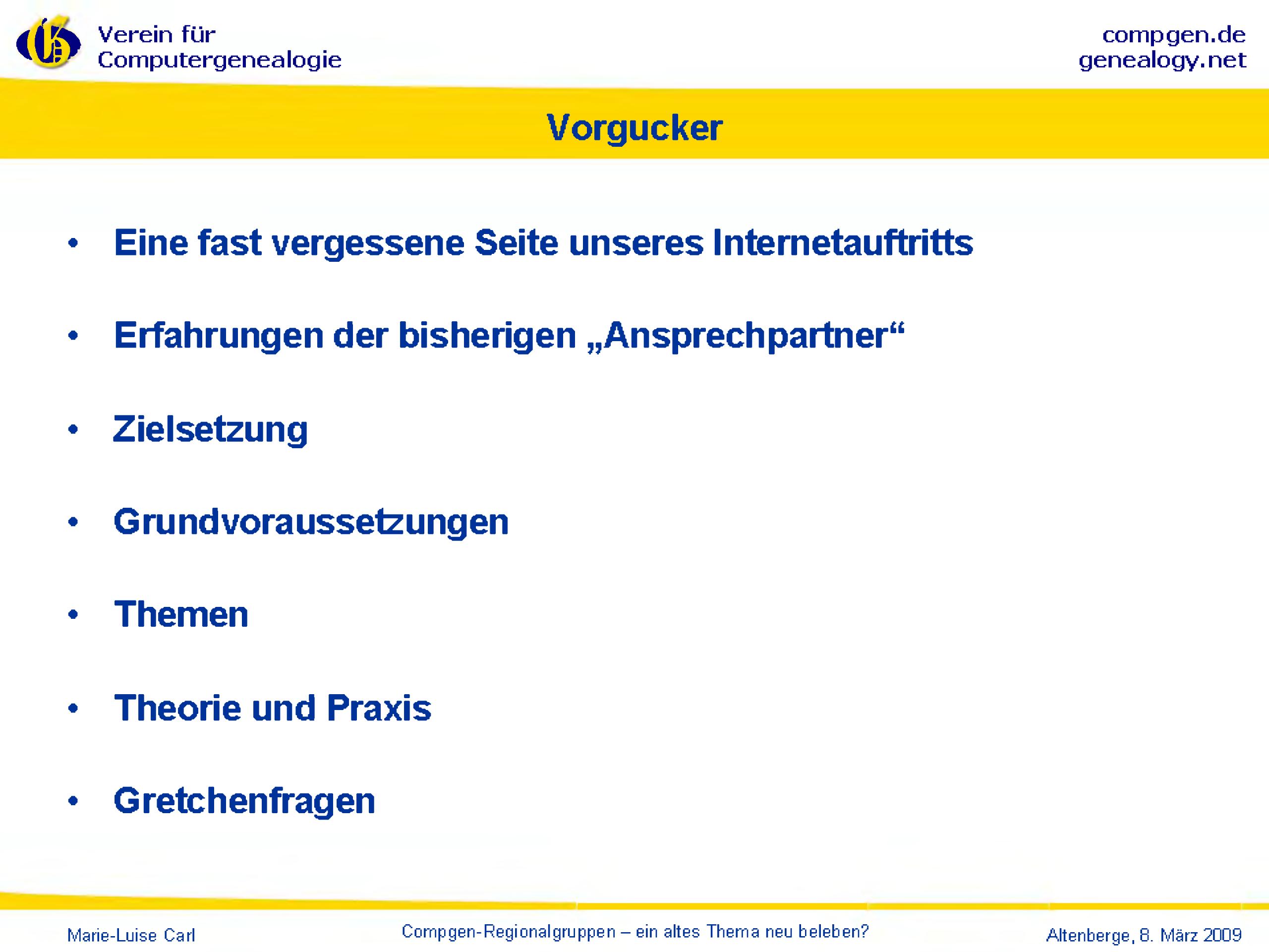 Foliensatz zum Workshop "Compgen-Regionalgruppen - ein altes Thema neu beleben?" |