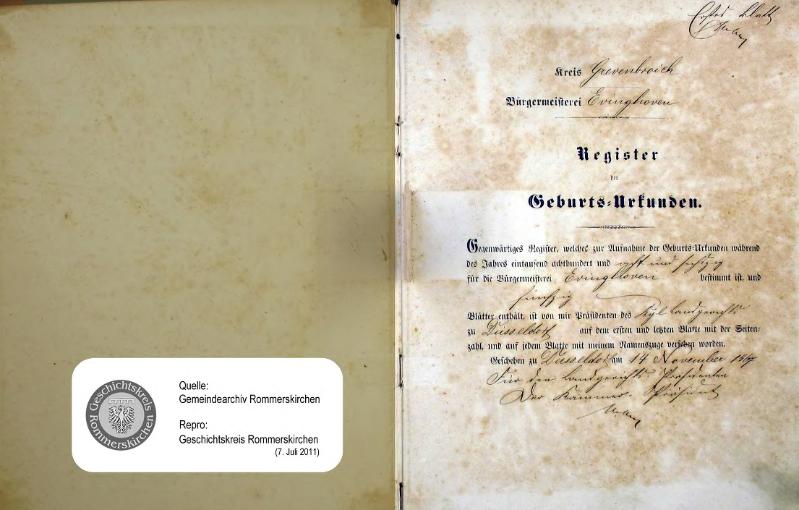 "Standesamtregister aus dem Gemeindearchiv Rommerskirchen"