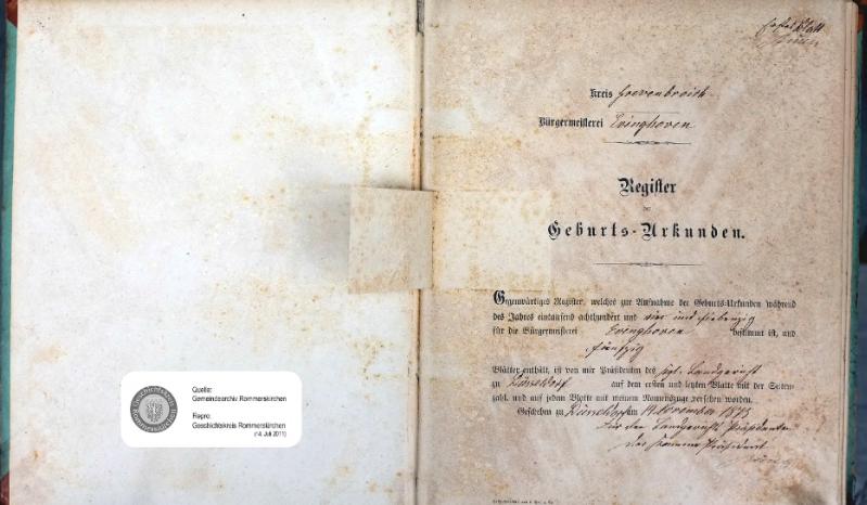 | aktuell | 12:42, 15. Jul. 2011 | 1.801 × 2.241, 40 Seiten (19,36 MB) | KlausErdmann (Diskussion • Beiträge) | {{Information |Beschreibung = ;Bürgermeisterei Evinghoven:Register der Geburts-Urkunden 1874 |Quelle = Gemeindearchiv Rommerskirchen |Urheber = |Datum = 1874 |Scans = Klaus Erdmann ''(Repro: 1 |