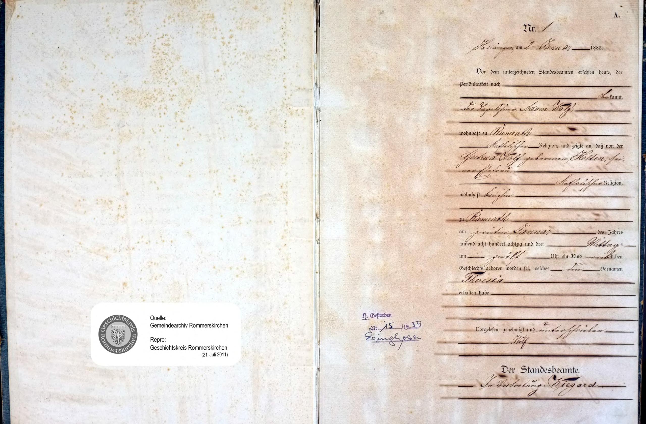 "Standesamtregister aus dem Gemeindearchiv Rommerskirchen"