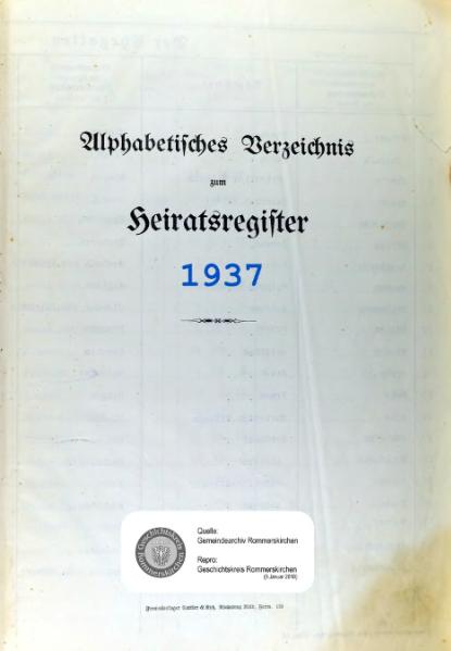 Alphabetisches Namensverzeichnis zum Heiratsregister 1937