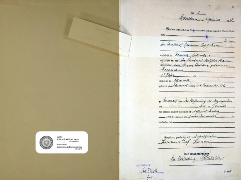 "Standesamtregister aus dem Gemeindearchiv Rommerskirchen"
