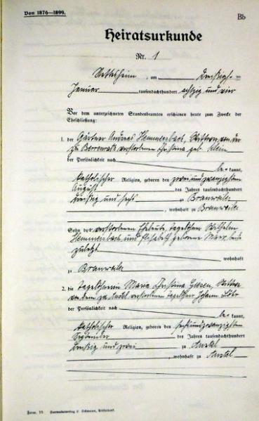 | aktuell | 09:00, 11. Nov. 2012 | 1.354 × 1.933, 15 Seiten (3,6 MB) | KlausErdmann (Diskussion • Beiträge) | {{Information |Beschreibung = ;Standesamt Nettesheim, Heiratsregister von 1884 |Quelle = Gemeindearchiv Rommerskirchen |Urheber = |Datum = 1884 |Scans = Klaus Erdmann ''(Repr |