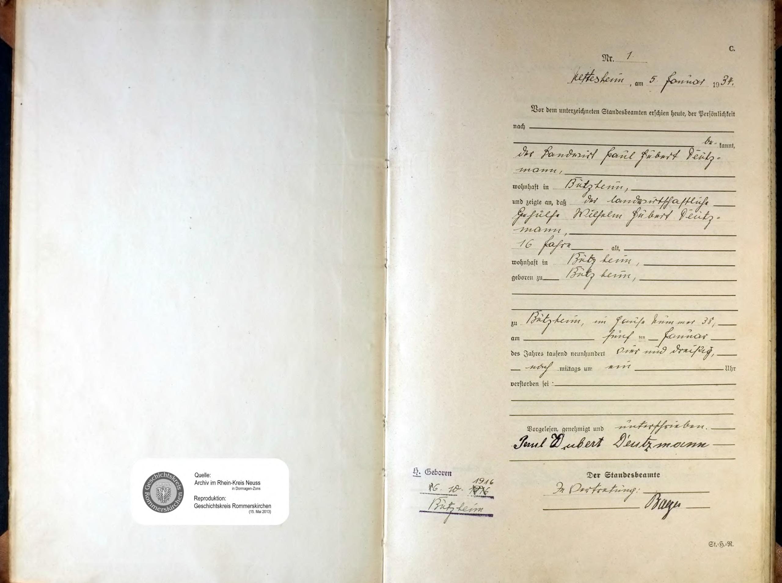 "Standesamtregister aus dem Gemeindearchiv Rommerskirchen"