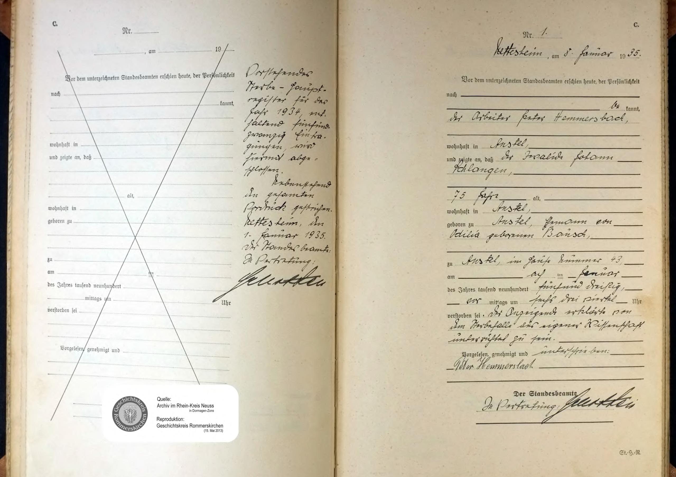 "Standesamtregister aus dem Gemeindearchiv Rommerskirchen"
