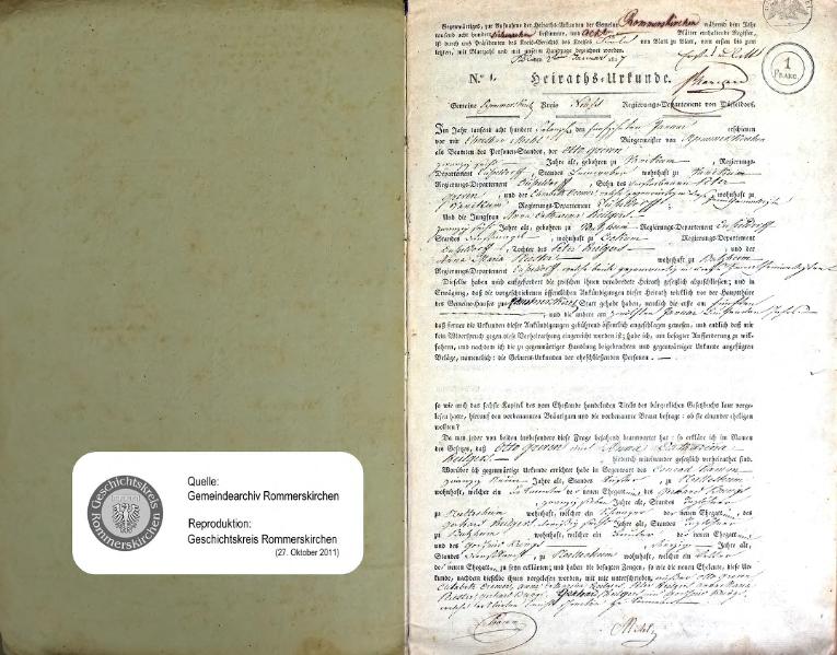 | aktuell | 17:07, 27. Okt. 2011 | 1.098 × 1.736, 10 Seiten (4,98 MB) | KlausErdmann (Diskussion • Beiträge) | {{Information |Beschreibung = ;Gemeinde Rommerskirchen, Register der Heirats-Urkunden von 1817 |Quelle = Gemeindearchiv Rommerskirchen |Urheber = |Datum = 1817 |Scans = Klaus Erdmann ''(Repro: |