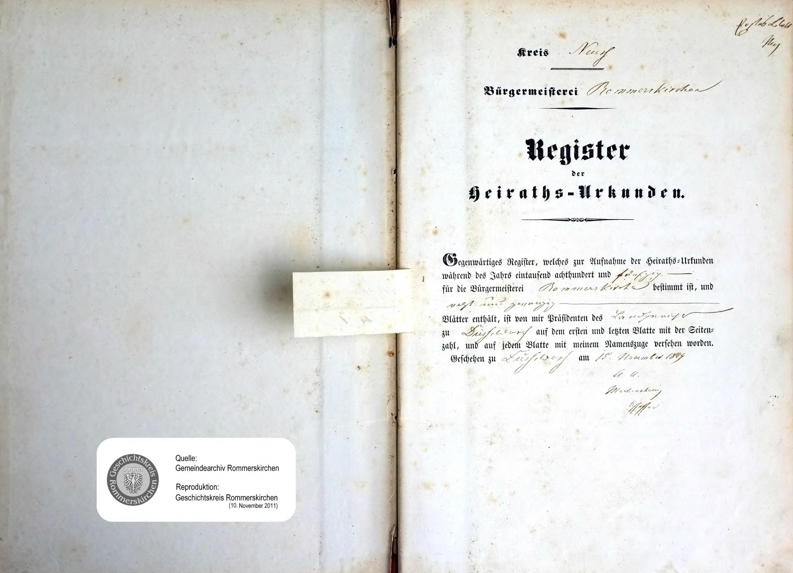 "Standesamtregister aus dem Gemeindearchiv Rommerskirchen"