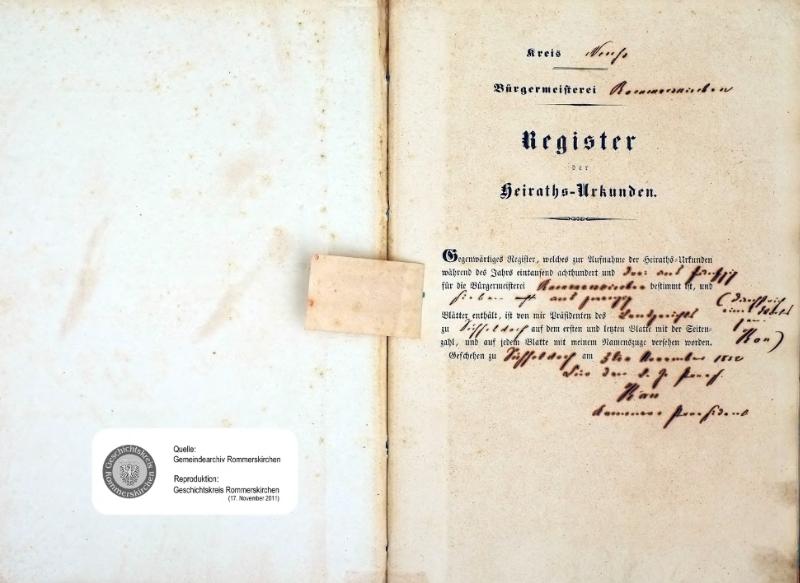 "Standesamtregister aus dem Gemeindearchiv Rommerskirchen"
