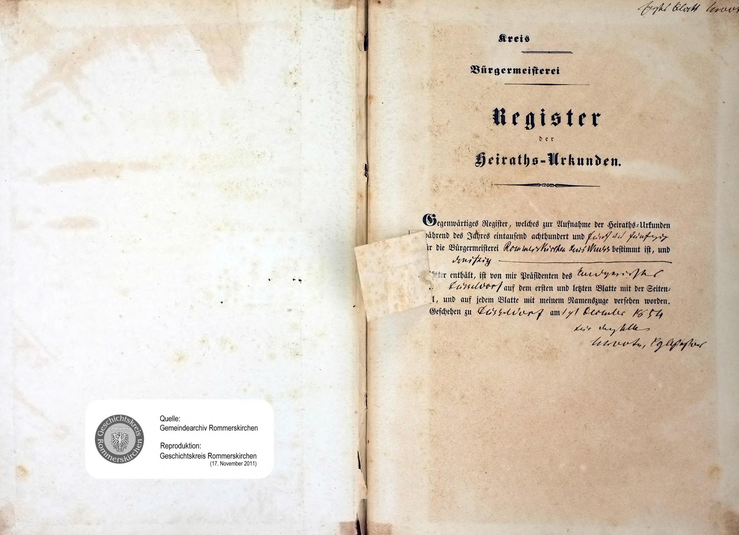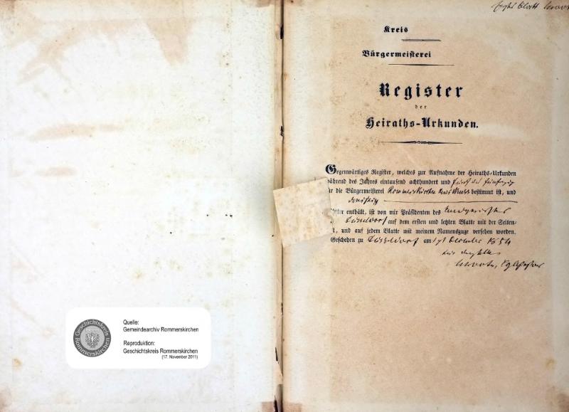 - Standesamt Rommerskirchen, Register der Heirats-Urkunden für das Jahr 1855
