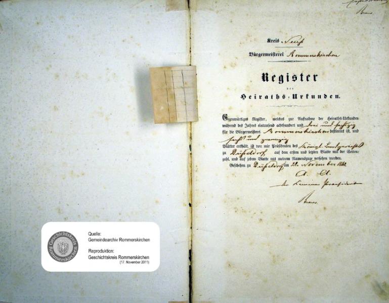 - Standesamt Rommerskirchen, Register der Heirats-Urkunden für das Jahr 1863