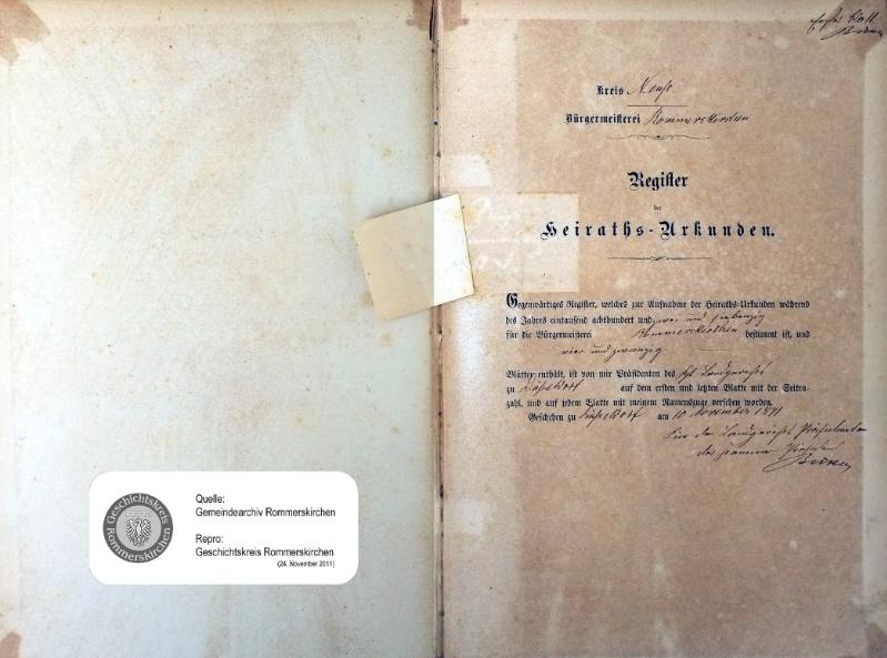 "Standesamtregister aus dem Gemeindearchiv Rommerskirchen"