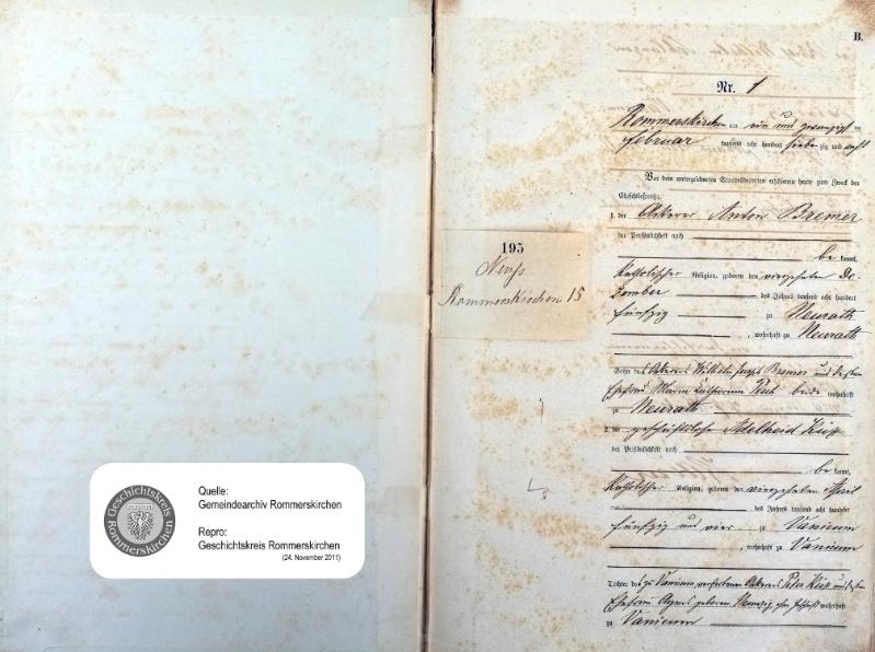"Standesamtregister aus dem Gemeindearchiv Rommerskirchen"