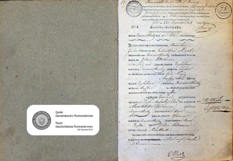 | aktuell | 14:03, 28. Dez. 2011 | 1.269 × 1.774, 17 Seiten (5,79 MB) | KlausErdmann (Diskussion • Beiträge) | {{Information |Beschreibung = ;Bürgermeisterei Rommerskirchen, Register der Sterbe-Urkunden 1816 |Quelle = Gemeindearchiv Rommerskirchen |Urheber = |Datum = 1816 |Scans = Klaus Erdmann ''(Repr |