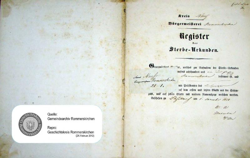 "Standesamtregister aus dem Gemeindearchiv Rommerskirchen"