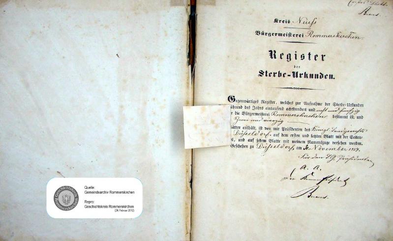 "Standesamtregister aus dem Gemeindearchiv Rommerskirchen"
