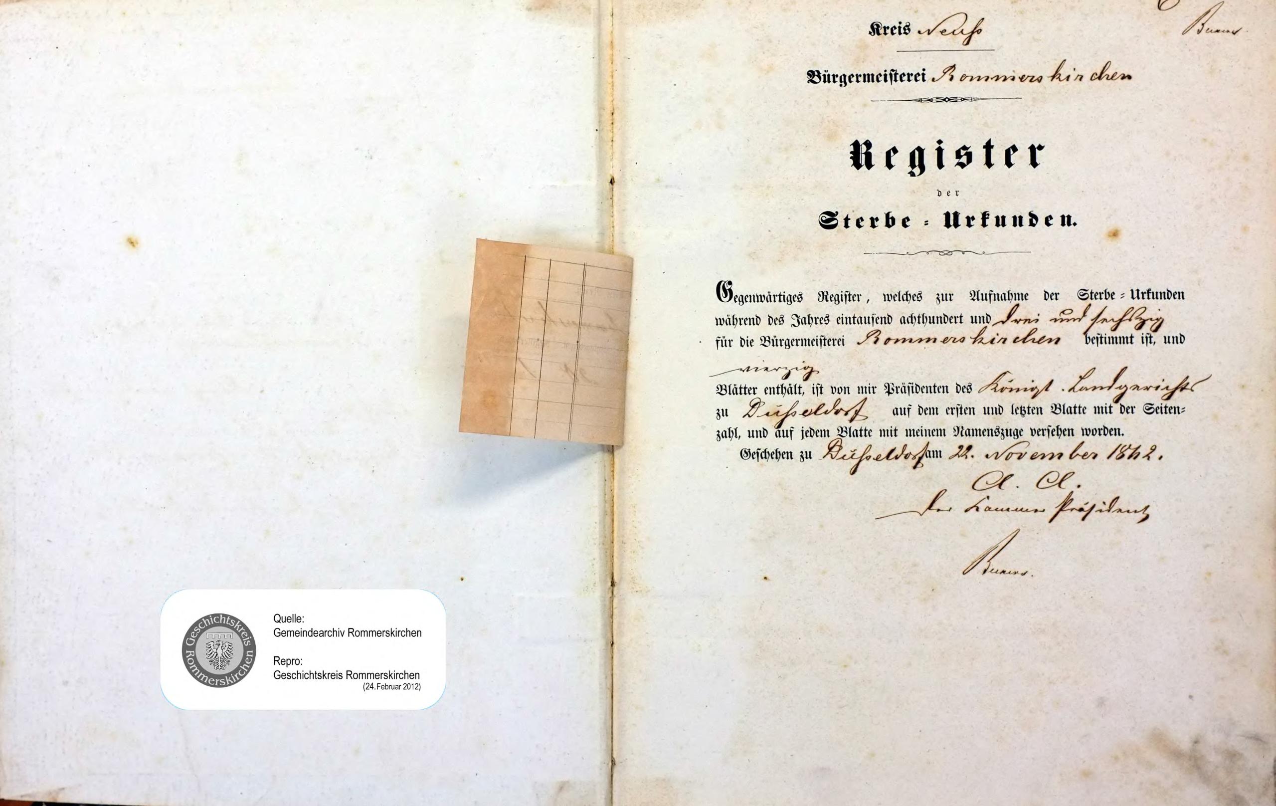 "Standesamtregister aus dem Gemeindearchiv Rommerskirchen"