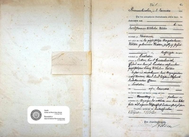 "Standesamtregister aus dem Gemeindearchiv Rommerskirchen"