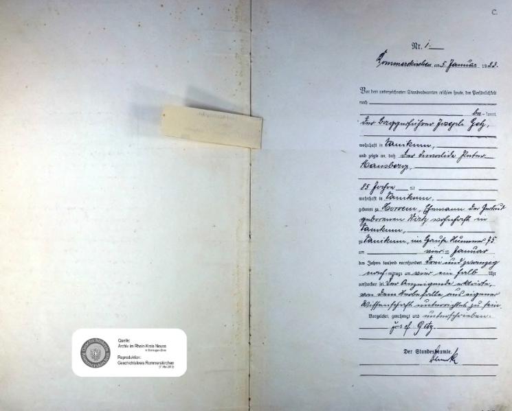 "Standesamtregister aus dem Gemeindearchiv Rommerskirchen"