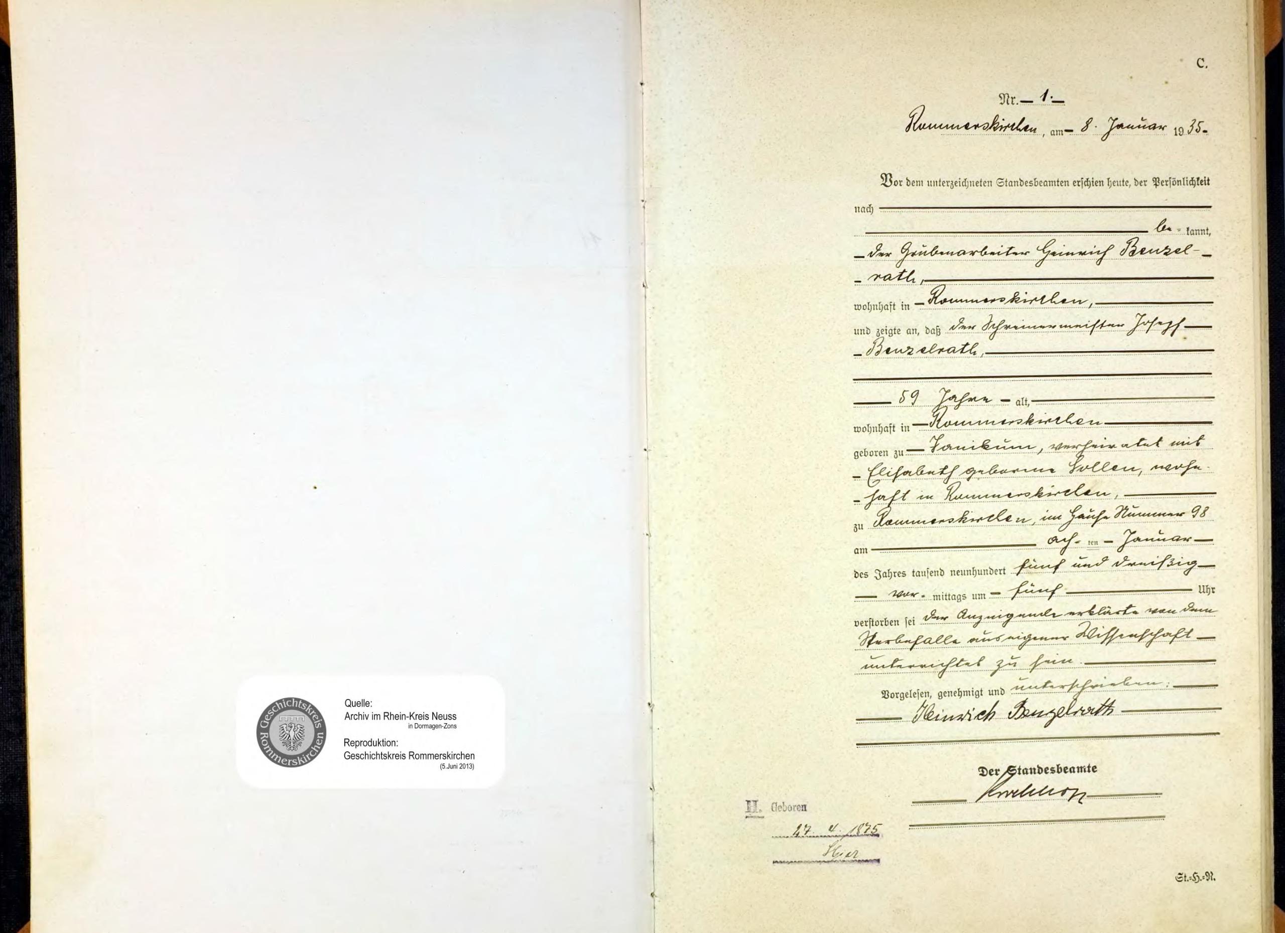 "Standesamtregister aus dem Gemeindearchiv Rommerskirchen"