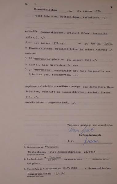 | aktuell | 18:03, 20. Jun. 2013 | 1.450 × 2.100, 20 Seiten (2,98 MB) | KlausErdmann (Diskussion • Beiträge) | {{Information |Beschreibung = ;Standesamt Rommerskirchen, Sterberegister von 1974 |Quelle = Archiv im Rhein-Kreis Neuss |Urheber = |Datum = 1974 |Scans = Bernhard Erdmann ''(Repro: 20. Juni 2013)'' |Gene |