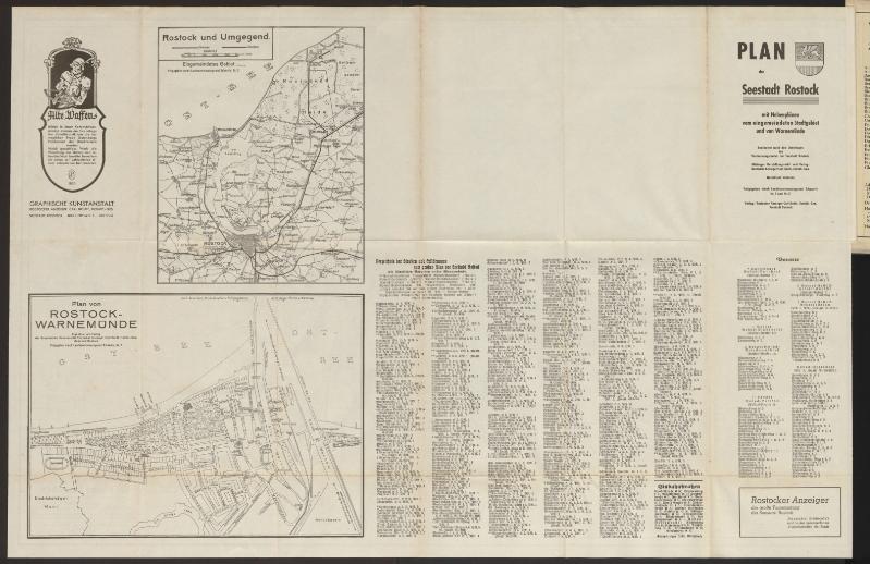 Rostocker Adreß-Buch -Einwohnerbuch- 1939 einschließlich Warnemünde und Gehlsdorf und der eingemeindeten Ortschaften Plan der Seestadt Rostock | ||