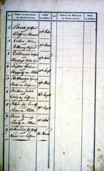 | aktuell | 09:59, 7. Mai 2011 | 2.071 × 3.107, 20 Seiten (12,58 MB) | KlausErdmann (Diskussion • Beiträge) | {{Information |Beschreibung = ;Amt Evinghoven:Heiratsurkunden von 1830 |Quelle = Gemeindearchiv Rommerskirchen |Urheber = |Datum = 1830 |Scans = Klaus Erdmann ''(Repro: 5.Mai 2011)'' |Genehmigu |