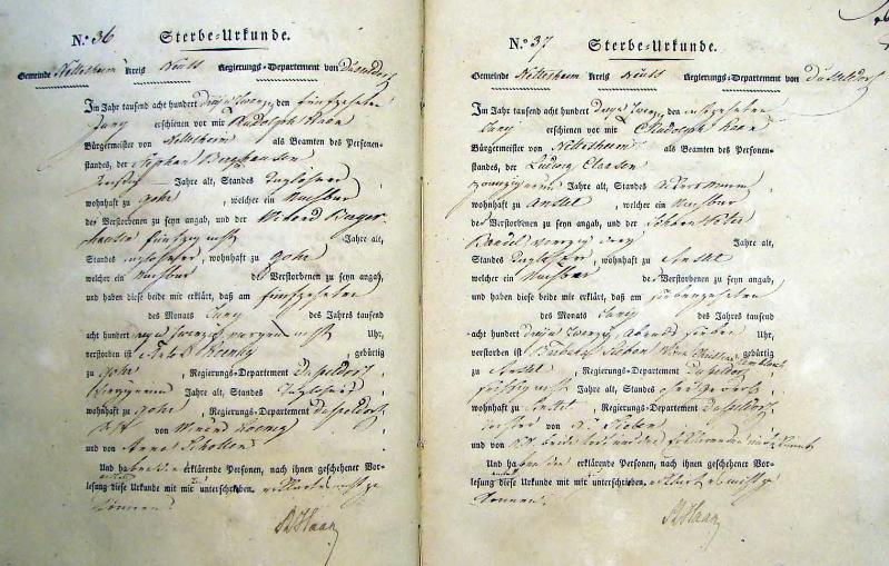 Standesamt Nettesheim, Sterbeurkunden von 1823