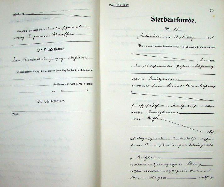 Bürgermeisterei Nettesheim, Sterbe-Register von 1881
