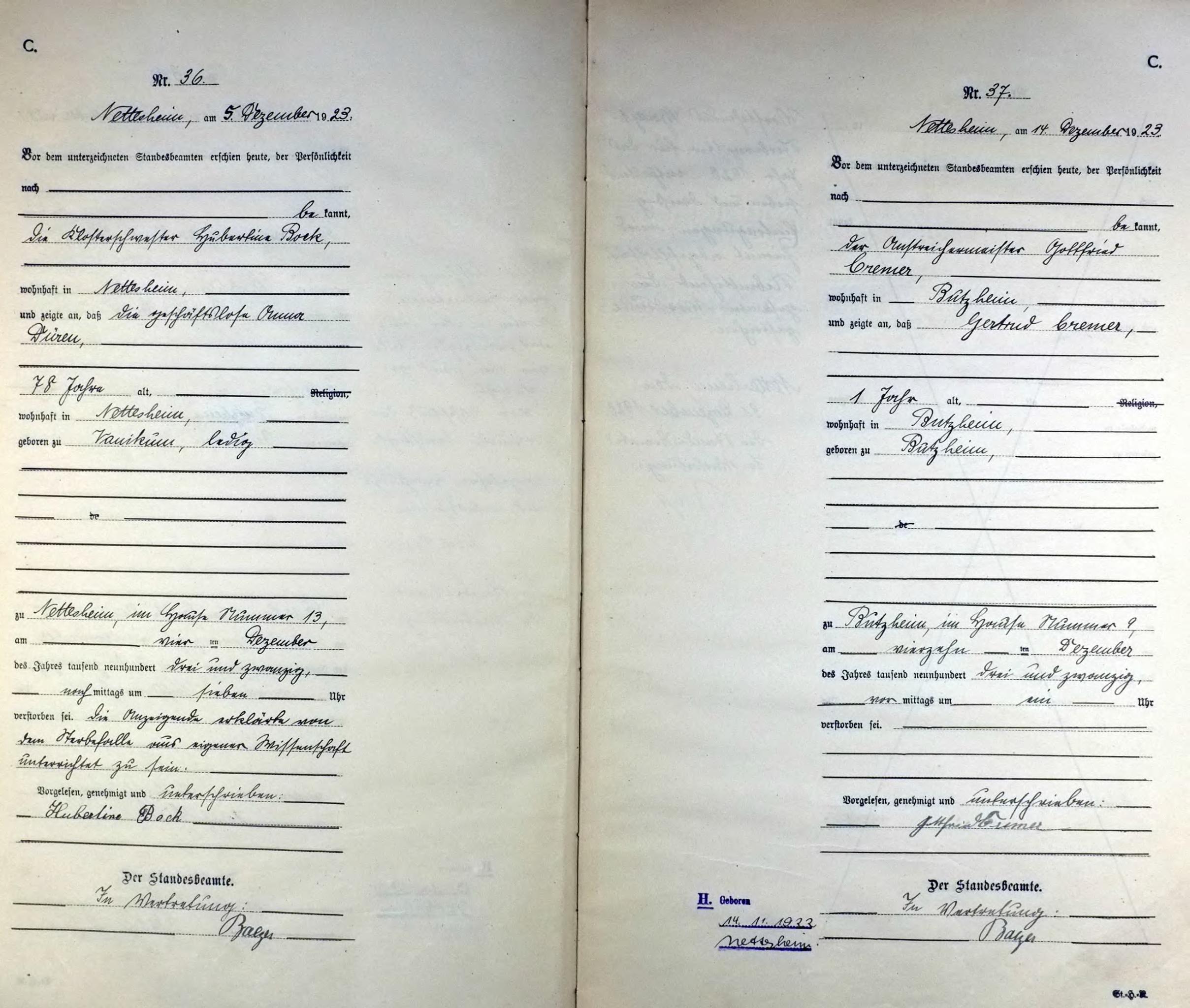aktuell19:29, 8. Mai 2013Vorschaubild der Version vom 19:29, 8. Mai 20131.625 × 2.252, 23 Seiten (6,97 MB)KlausErdmann (Diskussion • Beiträge){{Information |Beschreibung = ;Standesamt Nettesheim, Sterberegister von 1923 |Quelle = Archiv im Rhein-Kreis Neuss |Urheber = |Datum = 1923 |Scans = Klaus Erdmann ''(Repro: 7. Mai 2013)