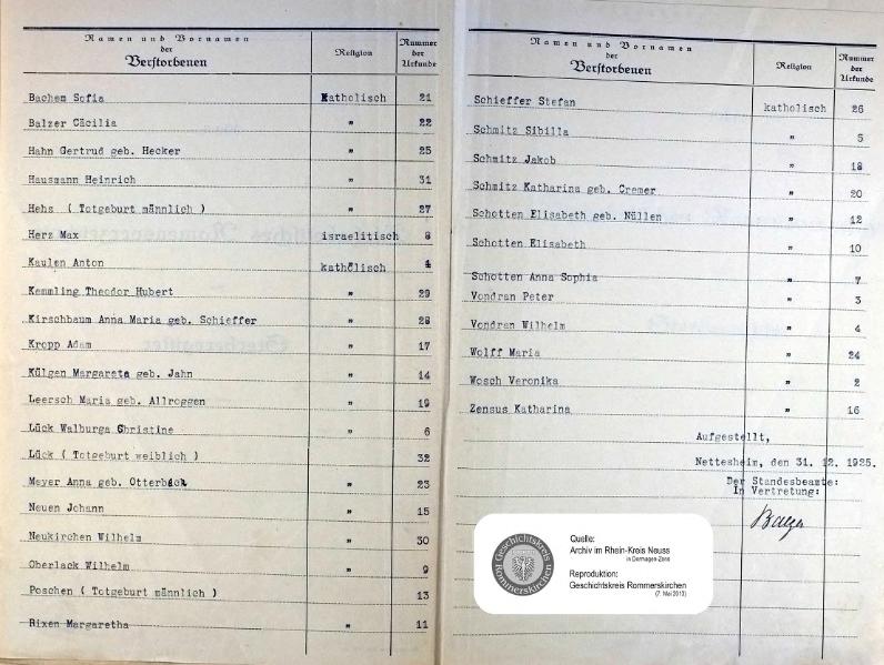 "Standesamtregister aus dem Gemeindearchiv Rommerskirchen"